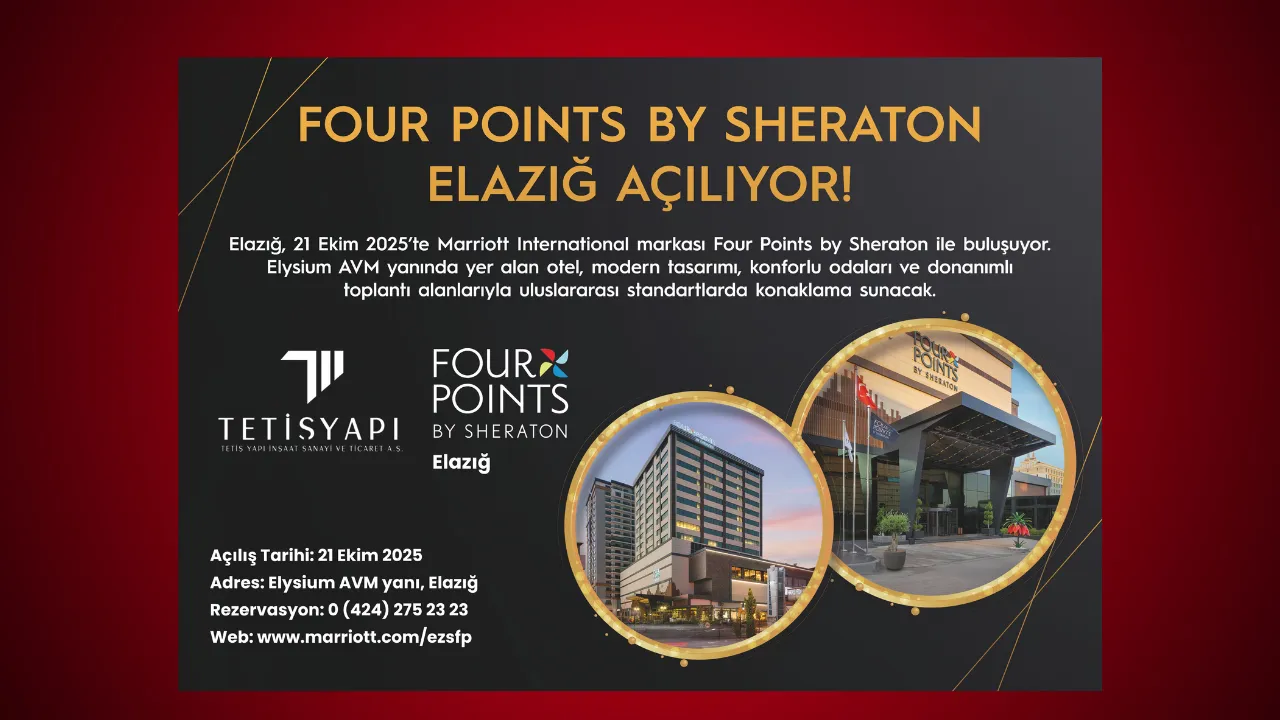 Elazığ, 21 Ekim 2025 itibarıyla Marriott International ailesinin seçkin markalarından Four Points by Sheraton ile buluşuyor.